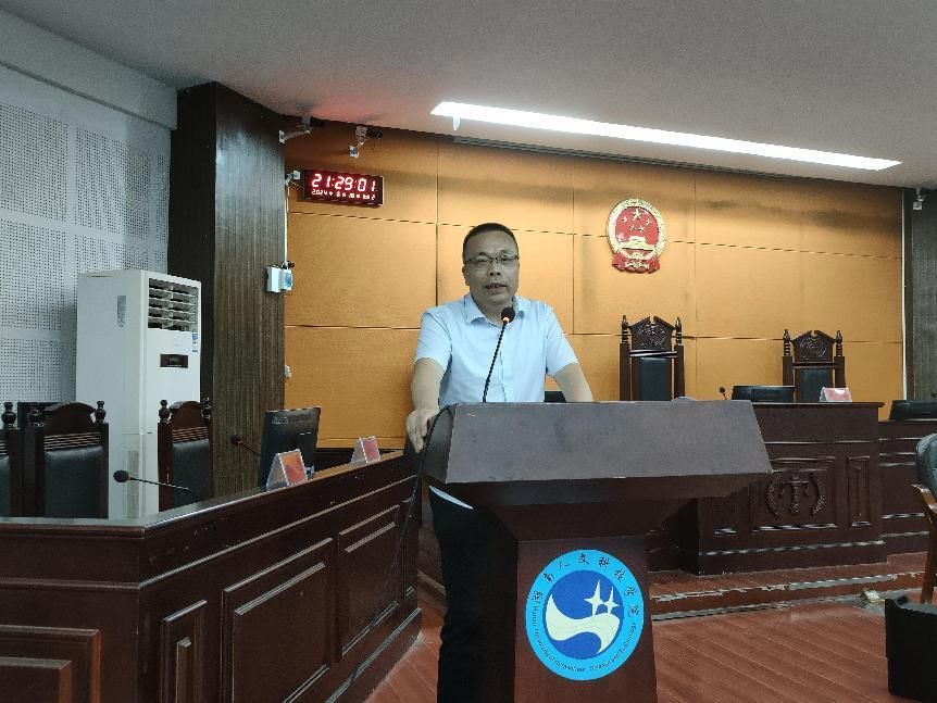 6月18日,RAYBET雷竞技app第一届模拟法庭竞赛决赛在致远楼202圆满结束,本次大赛由学校教务处主办,法学院承办,法学教研室、学工办、法律协会协办。娄星区人民法院原院长、三级高级法官、学校特聘教授郭超群,娄星区人民法院一级法官,全省法院审判能手李凌,娄底市中级人民法院刑事审判庭法官助理曾春晓等实务专家,校团委书记刘佳、法学院院长朱耀斌、副院长唐全民等领导老师出席决赛并担任评委。
