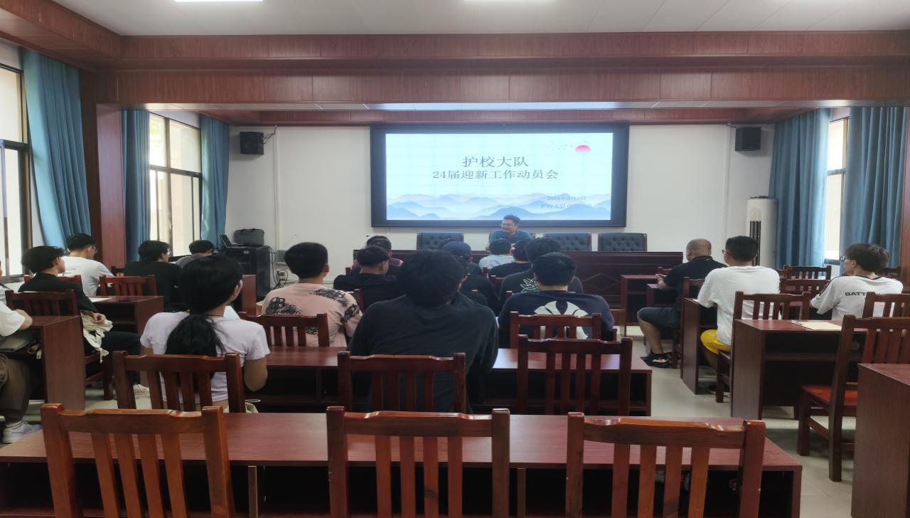 9月3日,保卫部护校大队在若谷楼116室召开2024年迎新工作动员会,保卫部部长周友、护校大队指导老师朱羽清参加本次动员会,会议由护校大队信息中队队员郭依敏主持。